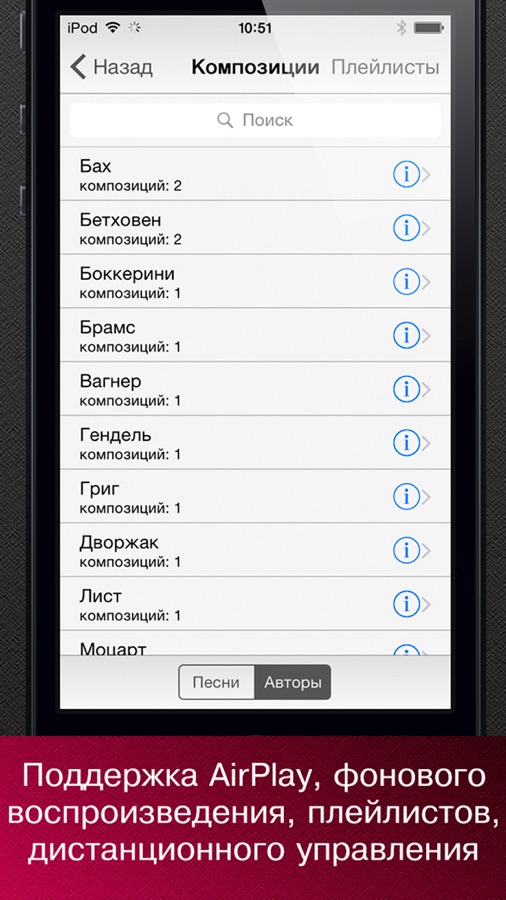 — Поддержка AirPlay, фонового воспроизведения, дистанционного управления, плейлистов