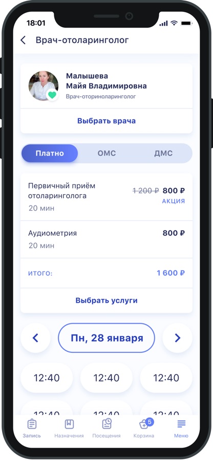 Онлайн запись на приём с возможностью выбора врача и удобного времени визита,