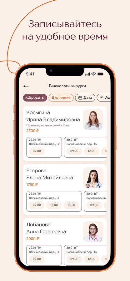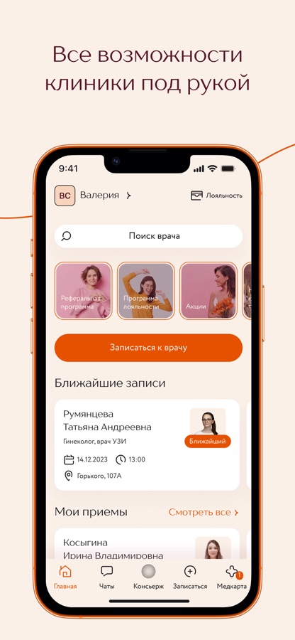 – Расписание ваших визитов в клинику;