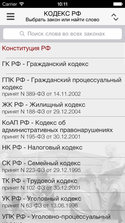 Скачайте приложение Кодекс РФ для iOS бесплатно - последняя версия (4.4.1) уже доступна для установки на ваш iPhone или iPad.