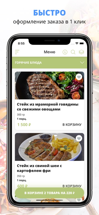 Скачивайте наше приложение, оформляйте заказ и наслаждайтесь любимой едой, где бы Вы ни были! Приятного аппетита!