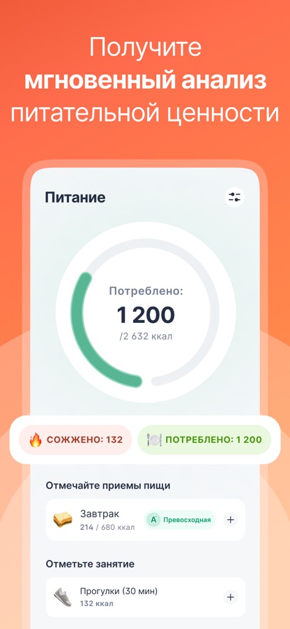 Надоели ручные вычисления калорий? Продвинутая функция сканирования еды облегчает все.