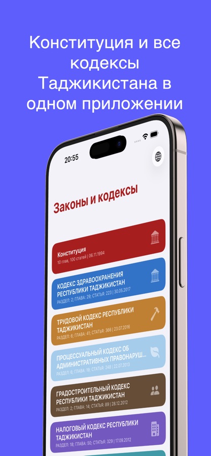 Конституция и кодексы Республики Таджикистан — удобное справочное приложение для юристов, студентов и всех граждан.