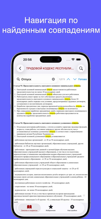 Конституция и все кодексы Республики Таджикистан — всегда под рукой. Поиск, избранное, три языка.