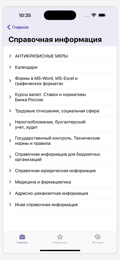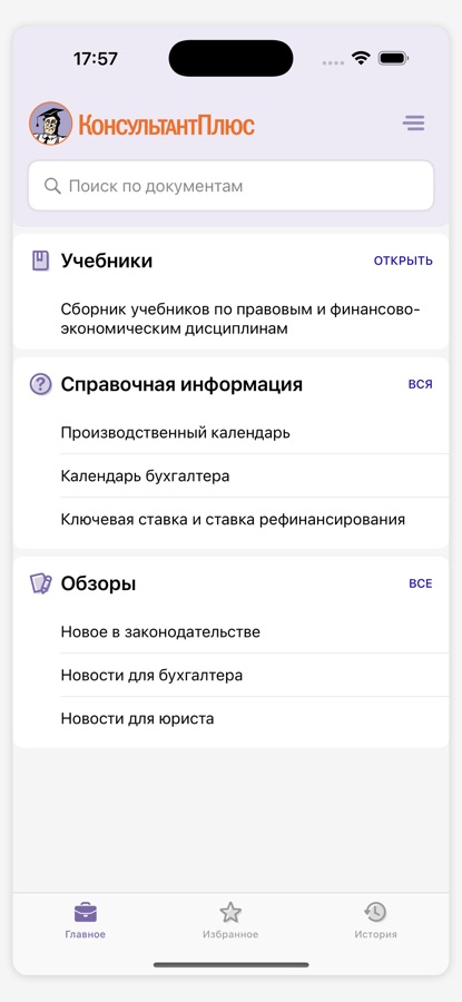 Информацию легко найти с помощью быстрого поиска. Просто введите в поисковую строку вопрос, термин или опишите проблему, как в интернет-поисковике (например, «как продлить срочный трудовой договор», «аудит», «защита прав потребителей»), и приложение подберет документы с ответами и решениями. Поиск понимает разговорные слова и общепринятые сокращения, такие как «бухучет» или «НДФЛ».