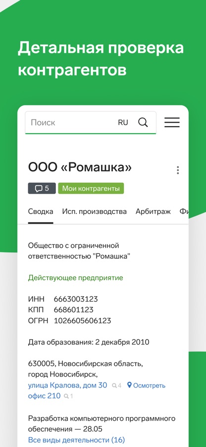 Мобильное приложение сервиса проверки контрагентов Контур.Фокус.