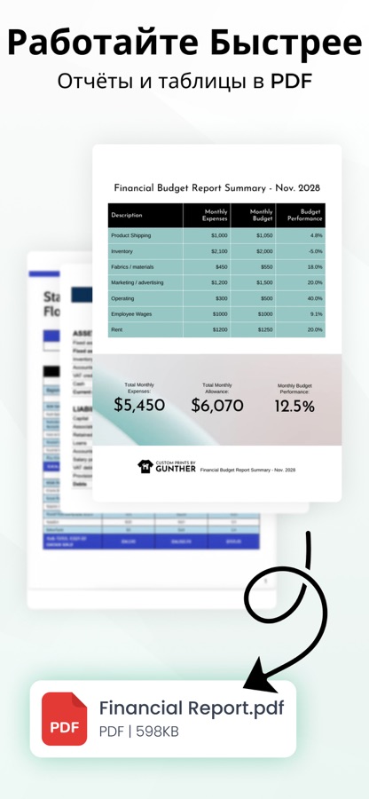 Создает PDF документы которые легко отправить распечатать и загрузить.