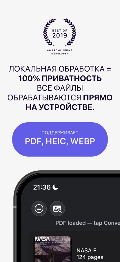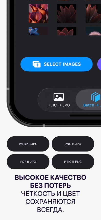 Одно фото или целая серия — всё конвертируется за секунды прямо на устройстве, без интернета и без потери качества.