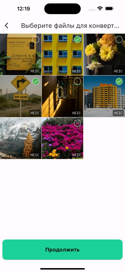 * Выберите файлы HEIC (один или несколько файлов)
