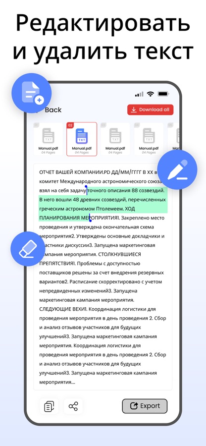 • Редактируйте текст — легко добавляйте, редактируйте или удаляйте контент.