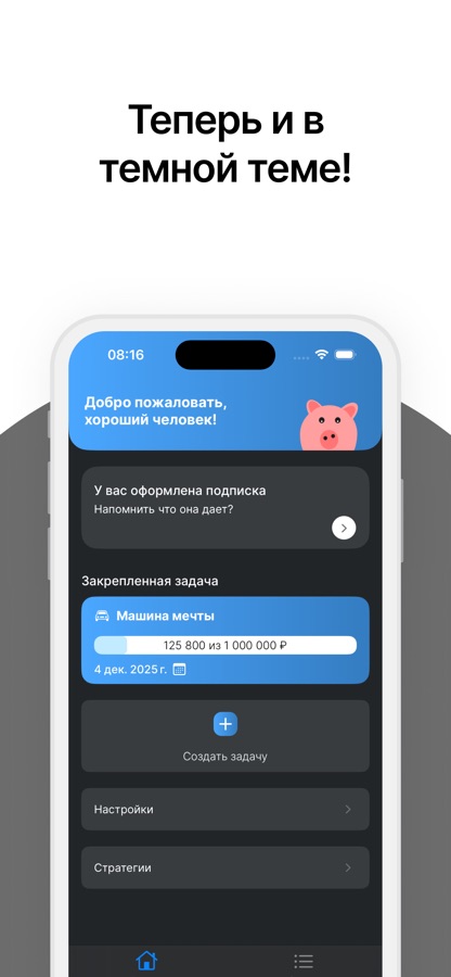 Создавайте персональные задачи для накопления, адаптированные под ваши потребности. Гибко настраивайте параметры, чтобы каждая задача отражала ваше желание.