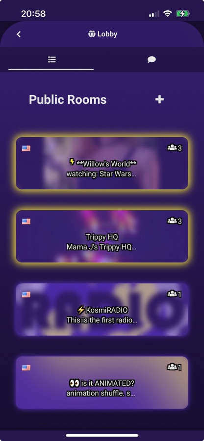 Kosmi is your entertainment universe, bringing together your favorite TV, movies, games, music, and other apps, all in one place. Hang out in one of your rooms, invite your friends, and see who shows up.