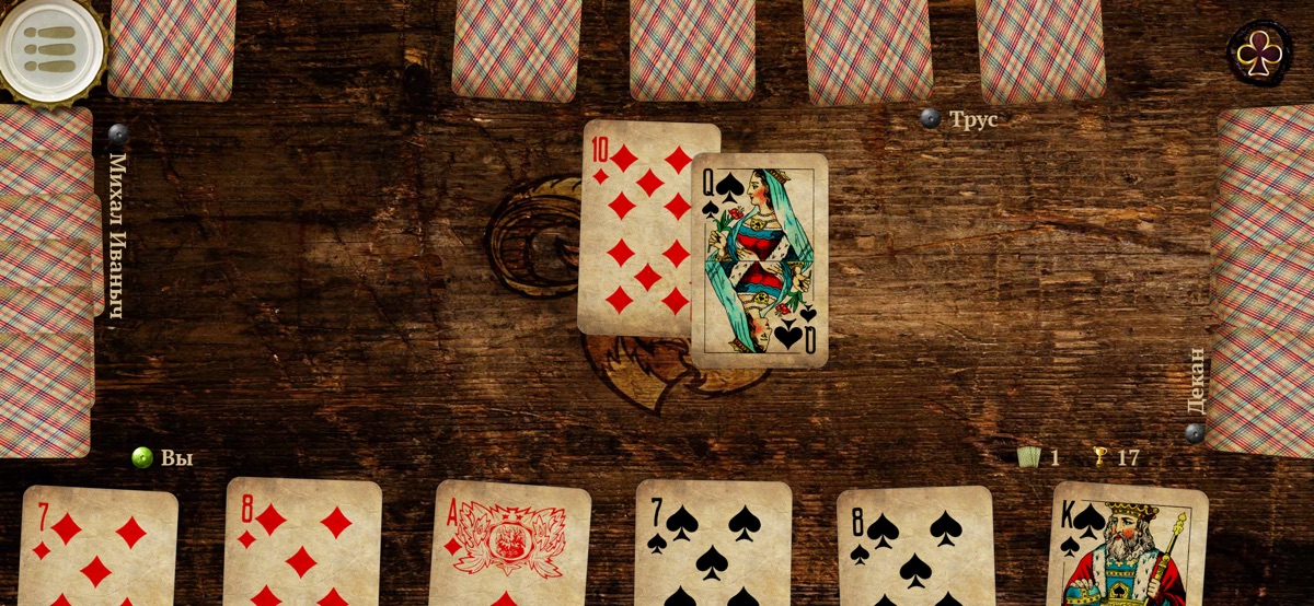 Козёл — легендарная советская карточная игра, не нуждающаяся в представлении. Цель проста: играя командой победить соперников и собрать наибольшее количество взяток, после чего проигравших смело обозвать «козлами».