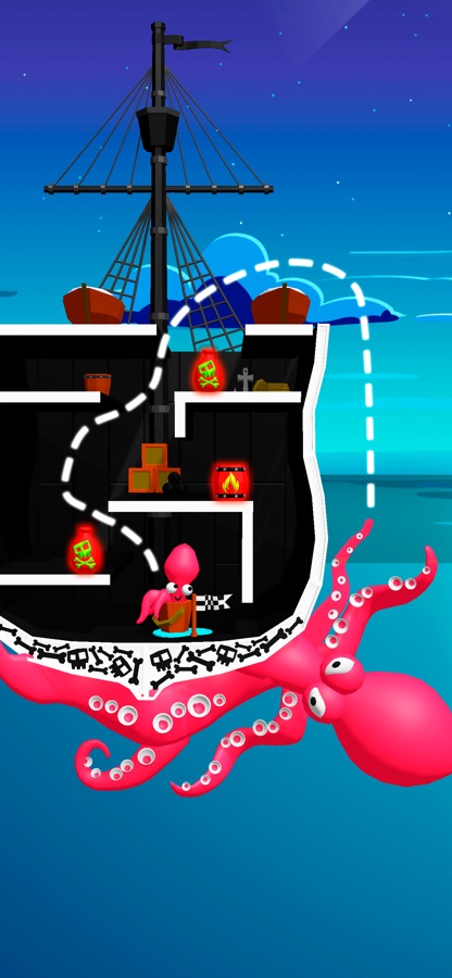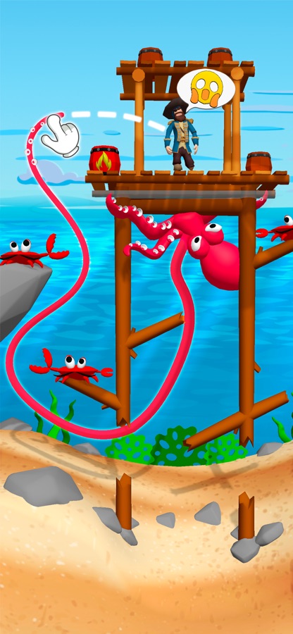 Протяни свои эластичные щупальца через барьеры и ловушки, расставленные пиратами, чтобы спасти братьев-осьминогов! Скачивай отличную приключенческую игру-головоломку бесплатно прямо сейчас и спасите маленьких кракенов!