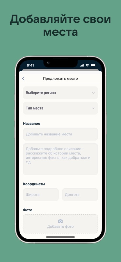 — Добавляйте свои любимые места и делитесь ими с другими пользователями