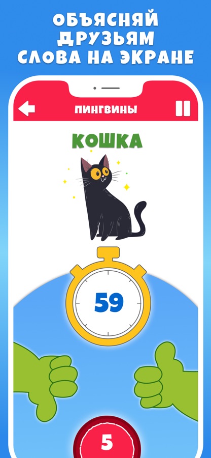 ►Игрок из первой команды берет телефон и объясняет слова с экрана своей команде выбранным способом. Например, жестами.