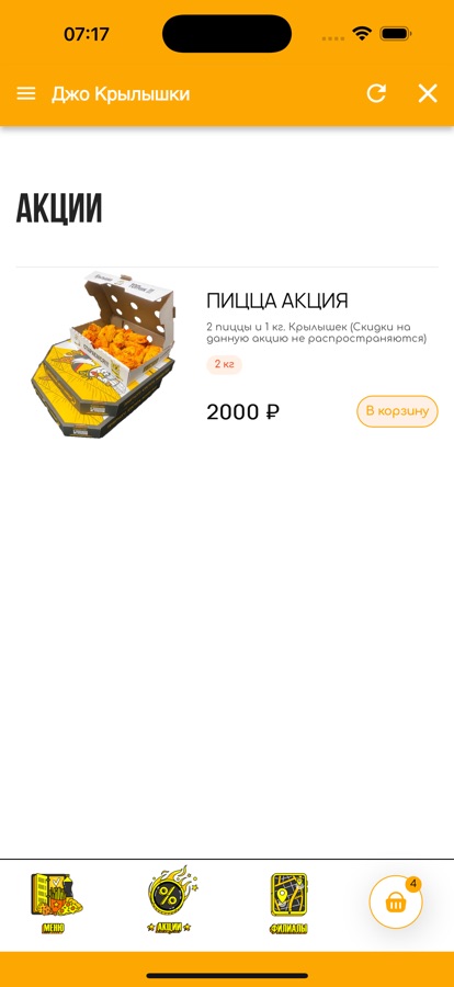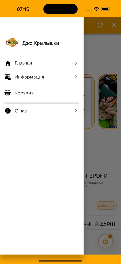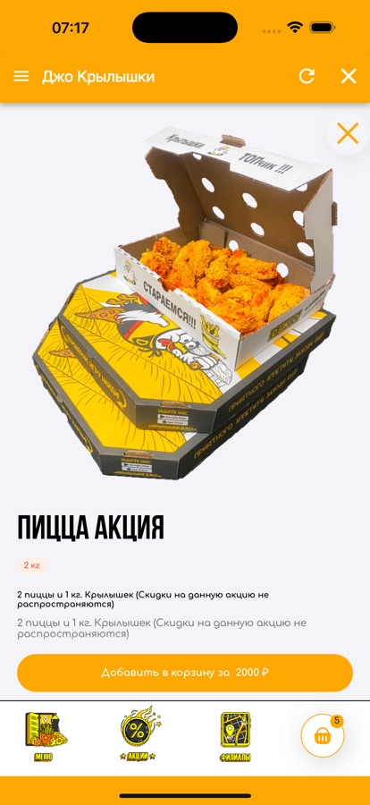 Через приложение вы всегда можете заказать фирменные куриные крылышки Джо , пиццу, бургеры, картофель фри, наггетсы, чебуреки, хотстеры, луковые кольца, круггетсы, различные сеты и многое другое.