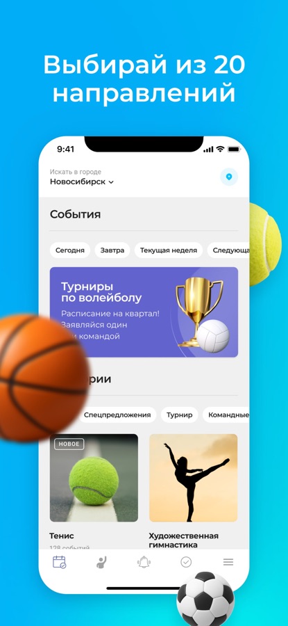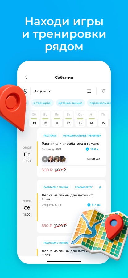 Больше 1000 событий каждый месяц: волейбол, футбол, баскетбол, настолки, мафия, настольный теннис, бадминтон, медитация, йога, бег, кроссфит, мастер-классы.