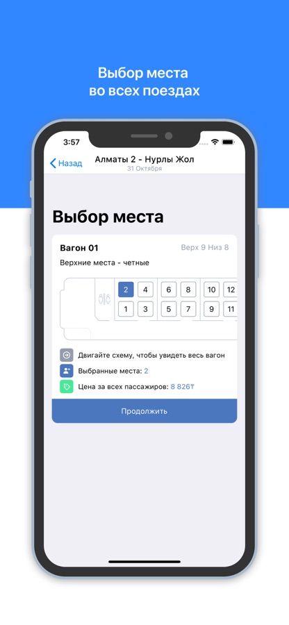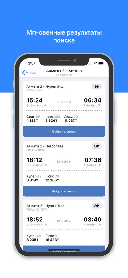 В приложении можно купить билеты на поезд Алматы-Нур-Султан, билеты на поезд Алматы-Шымкент, билеты Алматы-Атырау и любые другие ЖД билеты по Казахстану. Покупать билеты с нами удобно и выгодно!