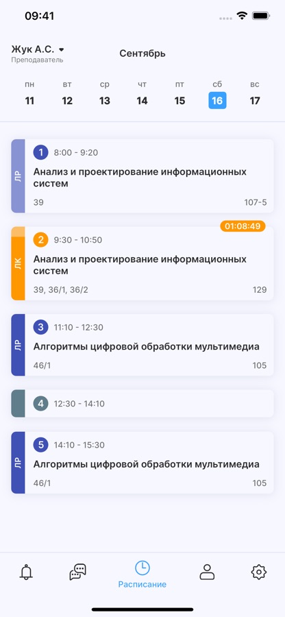 Вы можете найти расписание по названию группы, имени преподавателя или названию аудитории.
