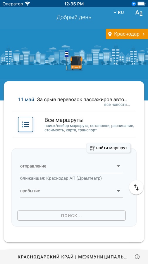 Приложение для пассажиров городского транспорта.
