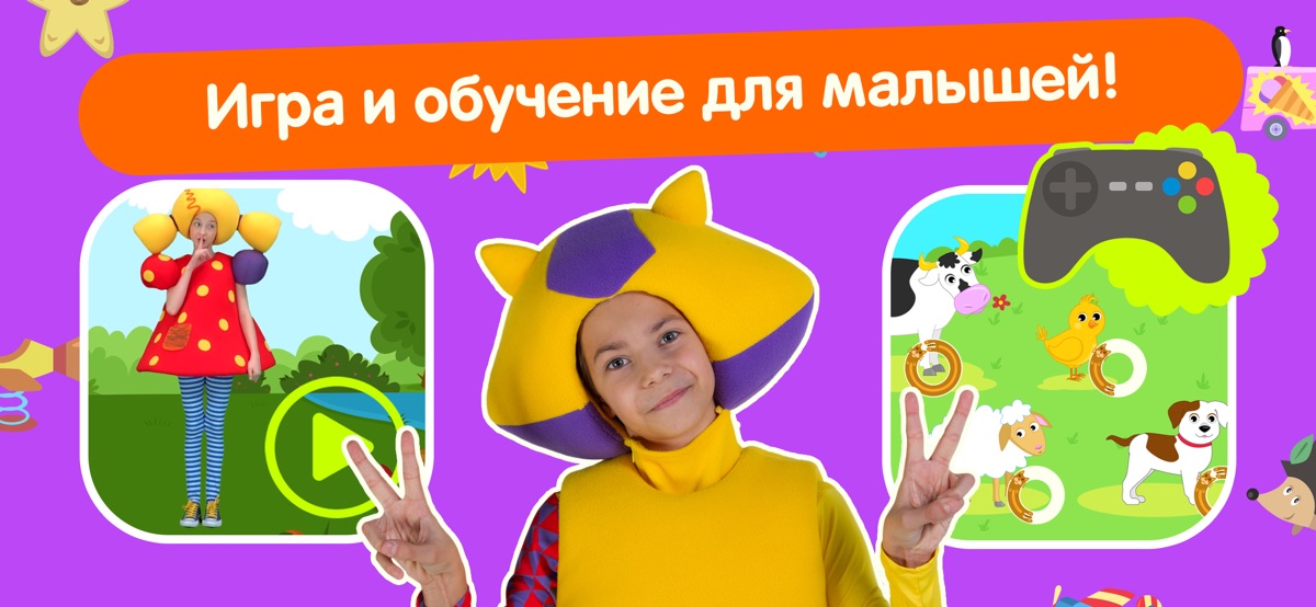 Приложение предназначено для малышей — там минимум кнопок и максимум подсказок. Серии будут включаться автоматически одна за другой, если ребенок не будет сам тапать по экрану.