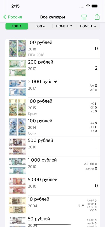 Приложение №1 для коллекционеров купюр. Поможет вести учет Вашей коллекции банкнот, коллекция всегда с собой!