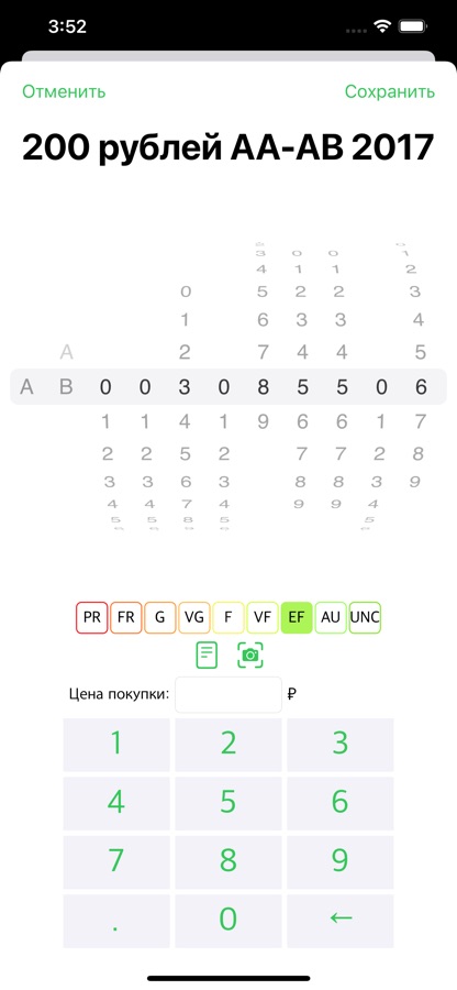 — Добавлять имеющиеся банкноты. Указать их состояние, серию, номер, цену приобретенной банкноты и комментарий.