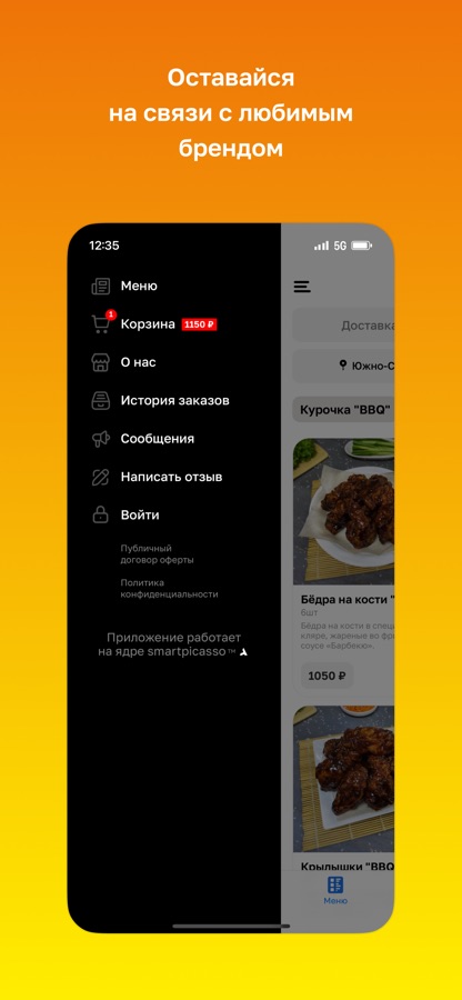 В приложении вы можете просматривать актуальное меню, выбирать блюда и оформлять заказ прямо со смартфона — быстро и удобно.