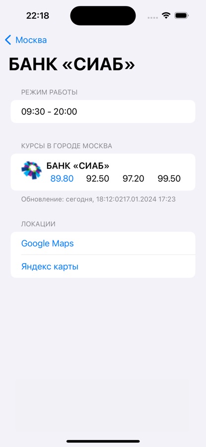 Теперь Вы можете узнать курсы валют ближайших банков, а также банков других регионов. Все курсы показаны на вашем айфоне или айпаде.
