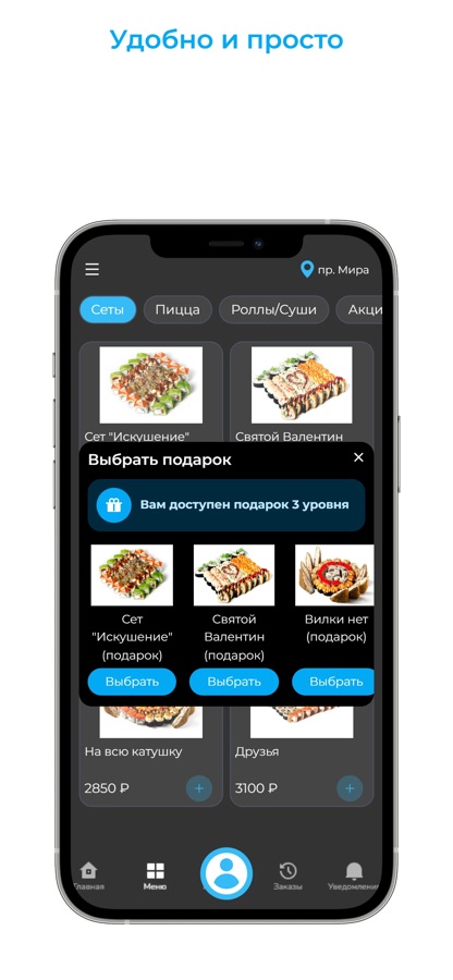 Получать информацию о проводимых акциях и самых вкусных предложениях через пуш уведомления!