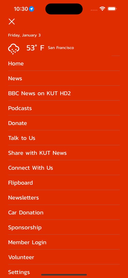 The KUT app provides an all digital, efficient stream using the AAC+ codec. It sounds great on all platforms, devices, radios and over cellular. You can of course listen to KUT when you’re traveling outside of Austin, and even the country, to stay connected to home. Tap in some headphones or plug your phone and have a listen!