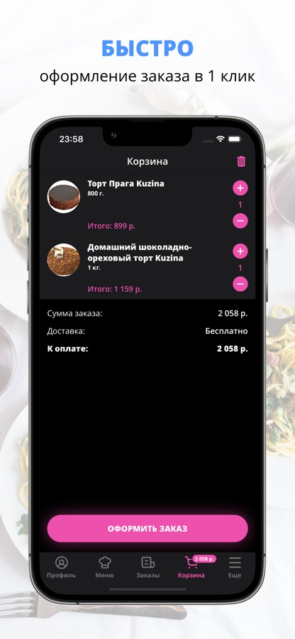 Скачивайте наше приложение, оформляйте заказ и наслаждайтесь любимой едой, где бы Вы ни были! Приятного аппетита!