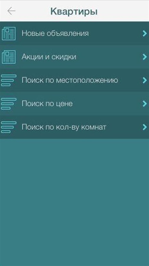 — Поиск необходимого объекта недвижимости по району, по стоимости, по застройщику, по количеству комнат;