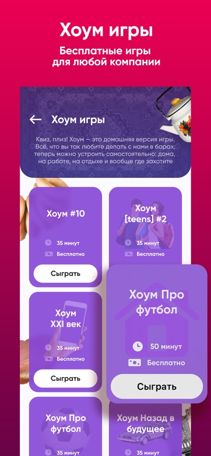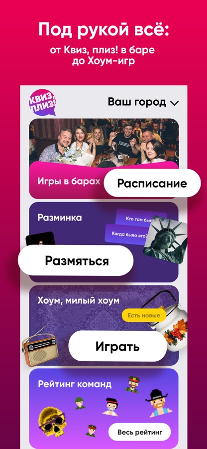 • Доступ к Хоум-играм: это бесплатный Квиз, плиз! для любой компании. Все менее домашние, все более мобильные игры;