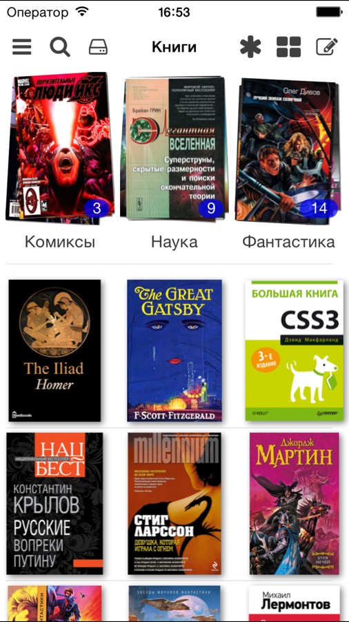 — Помогает организовать ваши книги по полкам, каталогизировать их с помощью тем и отсортировать в различных режимах.