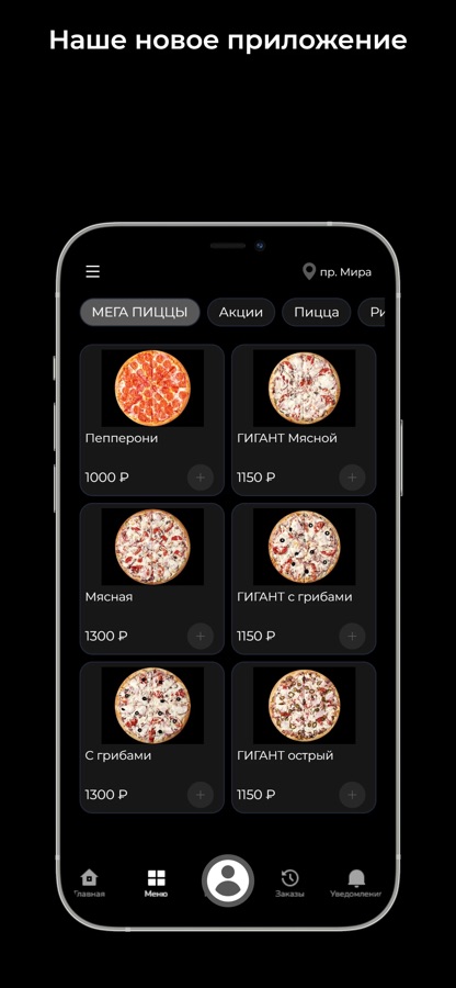 Приложение для доставки пиццы, роллов и бургеров.
