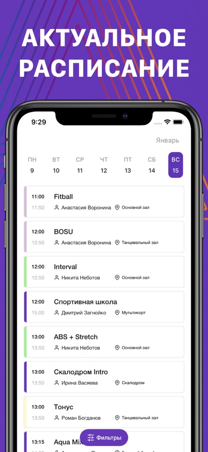 – Актуальное расписание: групповых и детских тренировок