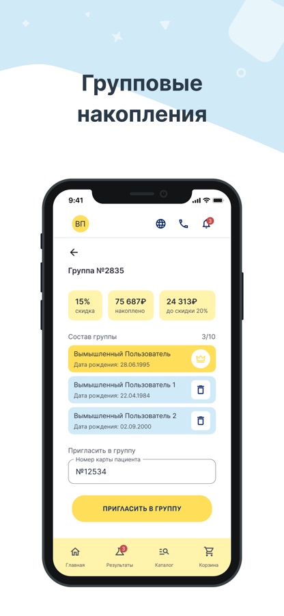 Результаты исследований и накопительные скидки в приложении Лаборатории Овум.