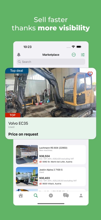 Our App is used internationally and regionally. You can find offers from Austria, Germany, Hungary, Slovenia, Italy or Switzerland. Once you have discovered your desired offer you can view the exact location of the offered machine on the map or contact the seller right away.