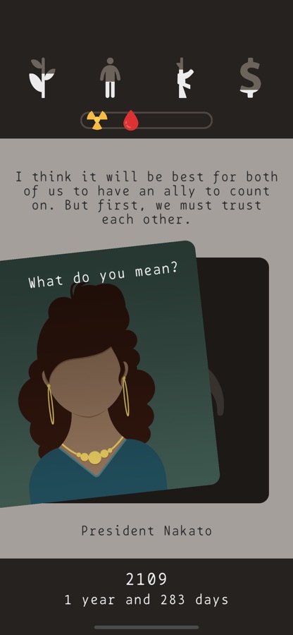 2075 год. Мир лежит в руинах. Лишь немногие выжили после глобальной катастрофы. Твоя задача – возглавить одну из уцелевших стран и привести её к спасению… или гибели.