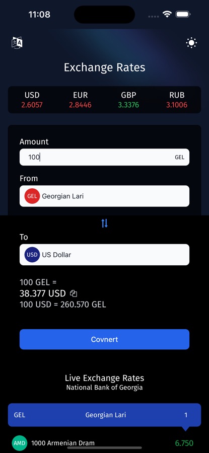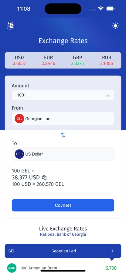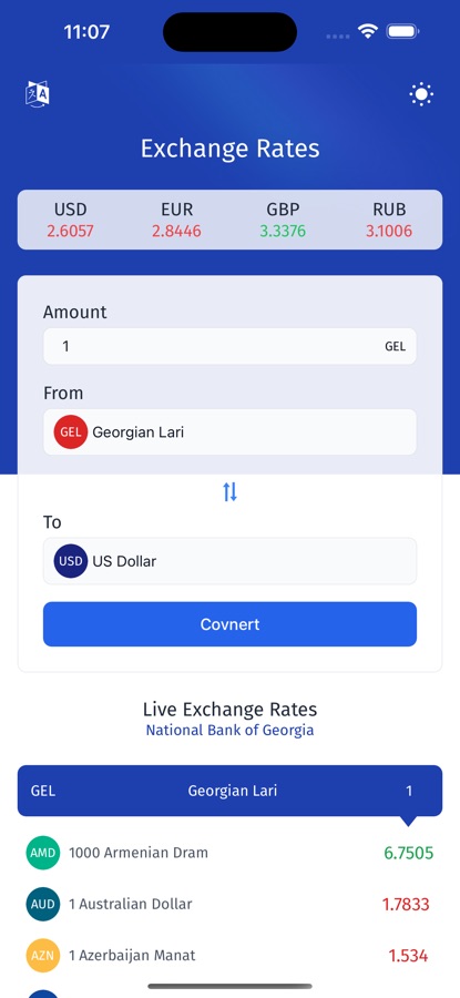 Laris Kursi is the ultimate currency converter app designed to provide seamless and accurate currency conversion from Georgian Lari (GEL) to other currencies, and vice versa. Whether you’re a frequent traveler, an international businessperson, or simply curious about exchange rates, Laris Kursi is the perfect companion to make quick and reliable currency conversions on the go.