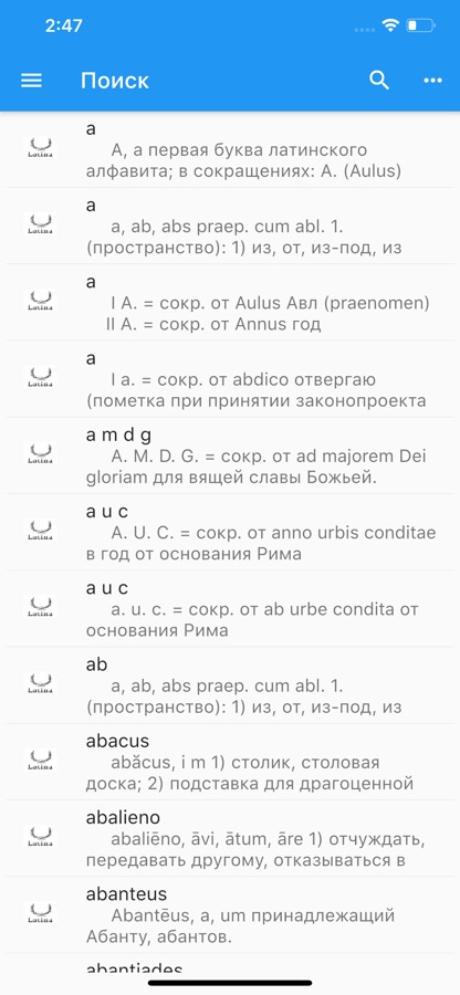 Надоело таскать с собой большие и тяжелые словари? Теперь всё необходимое будет у вас в смартфоне! Латинско-русский и русско-латинский оффлайн-словари будут всегда с вами, где бы вы ни были — на учебе, в путешествиях или занимаясь латинским в домашней обстановке.