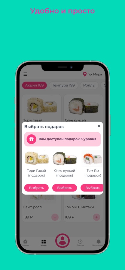 Получать информацию о проводимых акциях и самых вкусных предложениях через пуш уведомления!