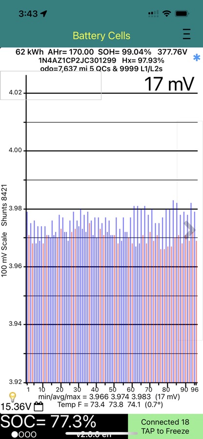 * Voltage of each of the 96 cell pairs (highlighted if shunt active)
