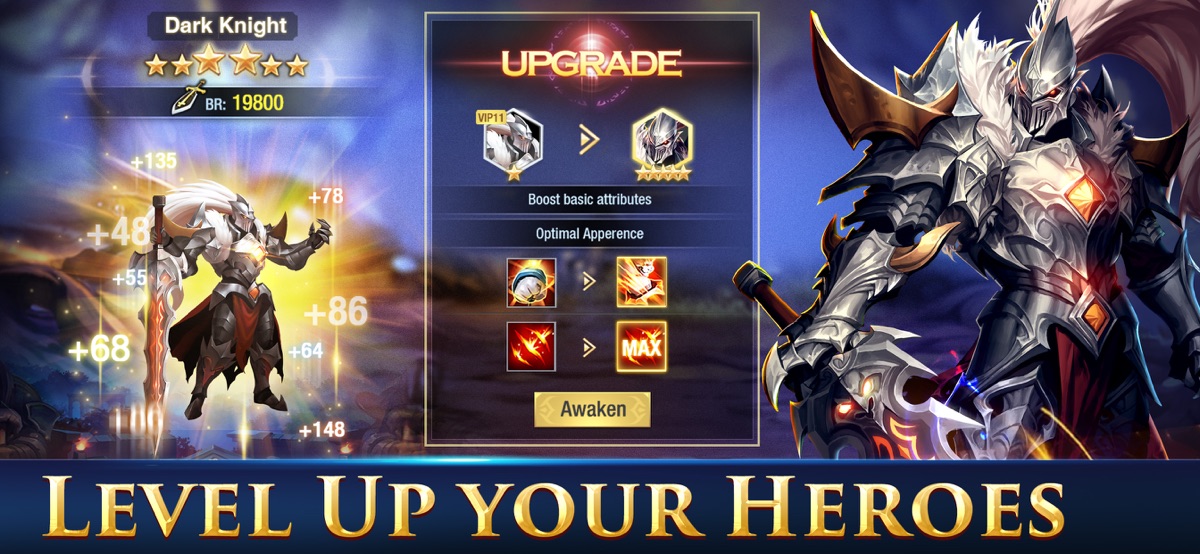 — Набирайте героев, увеличивайте и повышайте их силу, изучайте и улучшайте мощные умения и создавайте свою команду