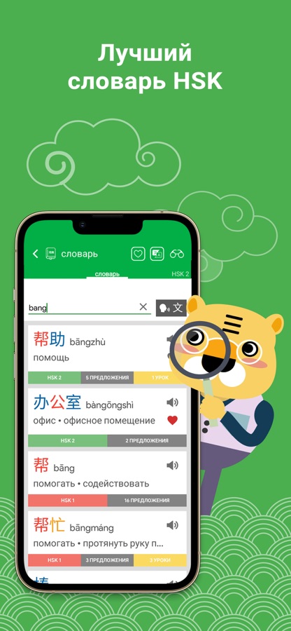 Более 5 000 слов HSK (v2) и 11 000 (v3). Твой личный китайский словарь — всегда под рукой.