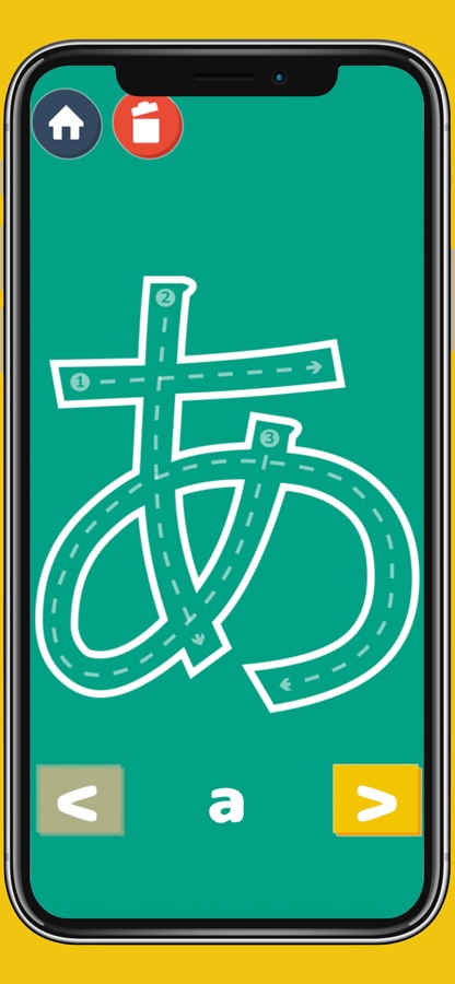 -. Начните рисовать японский алфавит прикосновения к экрану в точке старта (как вы можете видеть на экране появляется номер один изображения есть)