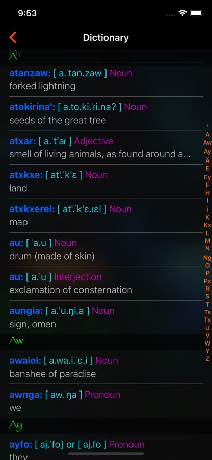 The LearnNavi Mobile App currently offers a searchable Na’vi dictionary.