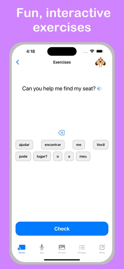 • Write Exercises teaches you to understand spoken words & write them correctly.